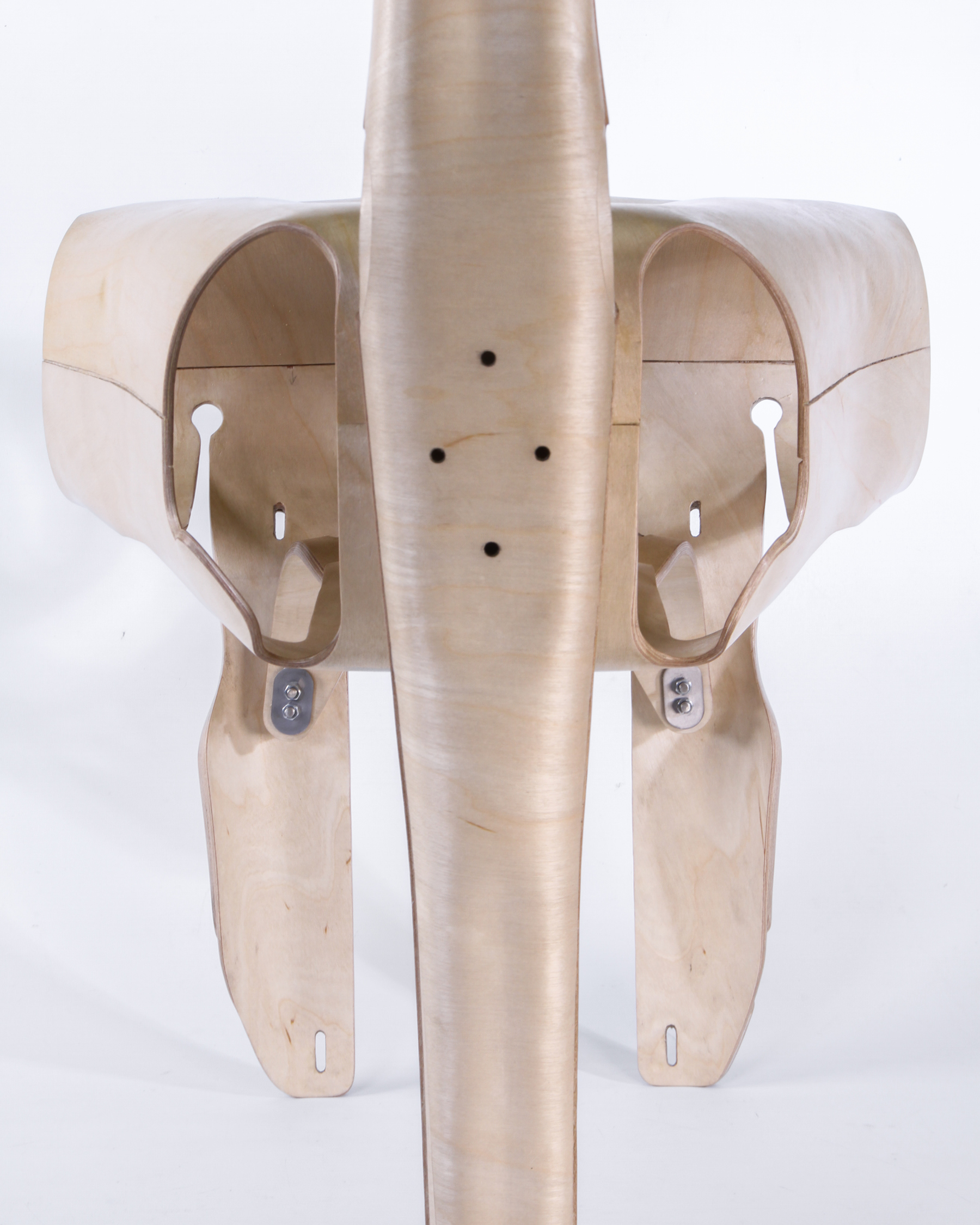 First assembly of the chair leg and seat components. The thickness of the shells vary from 1.6mm to 8mm.