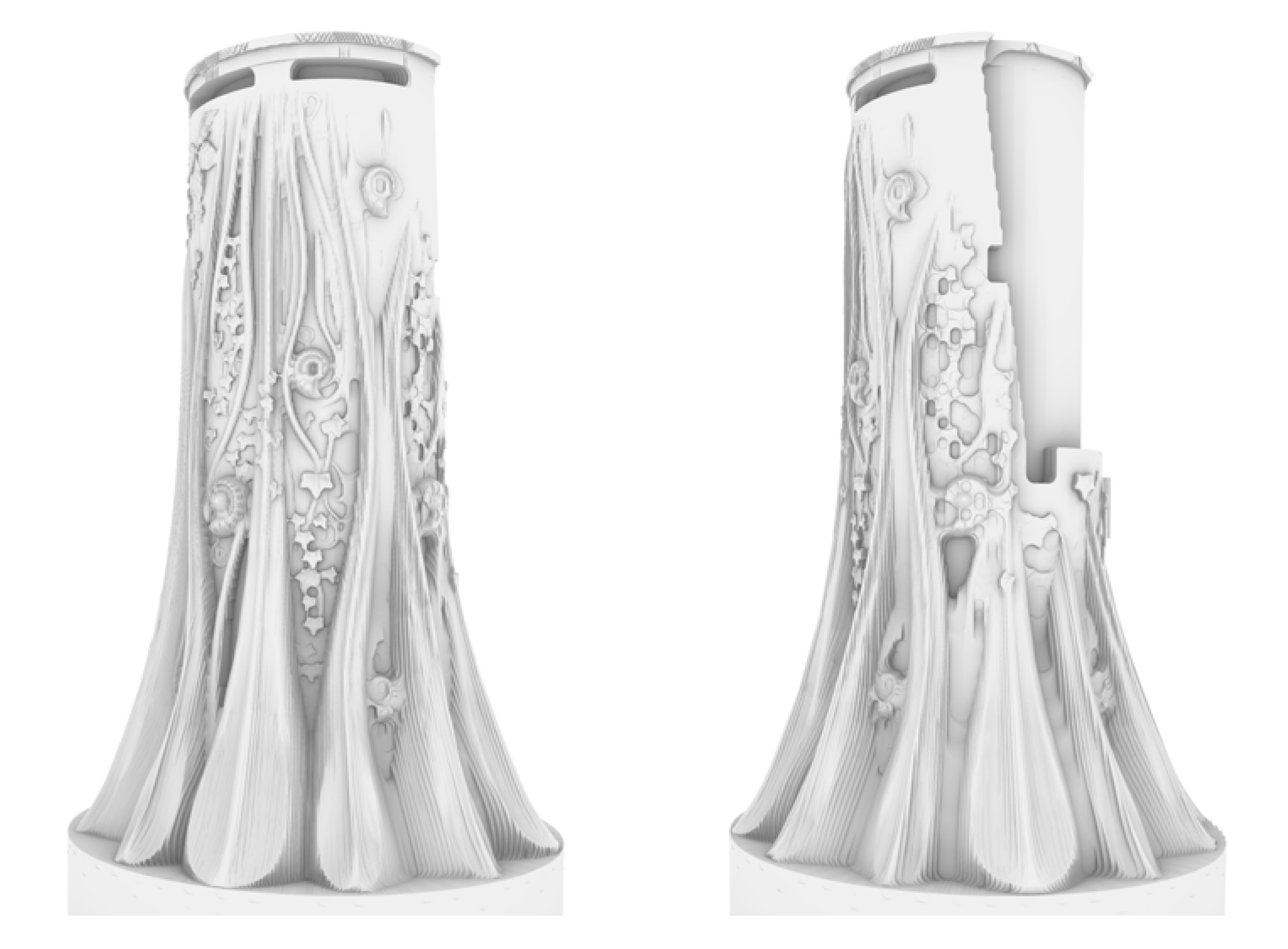 Close, and left each stage of the CNC process visible in its surface finish. It